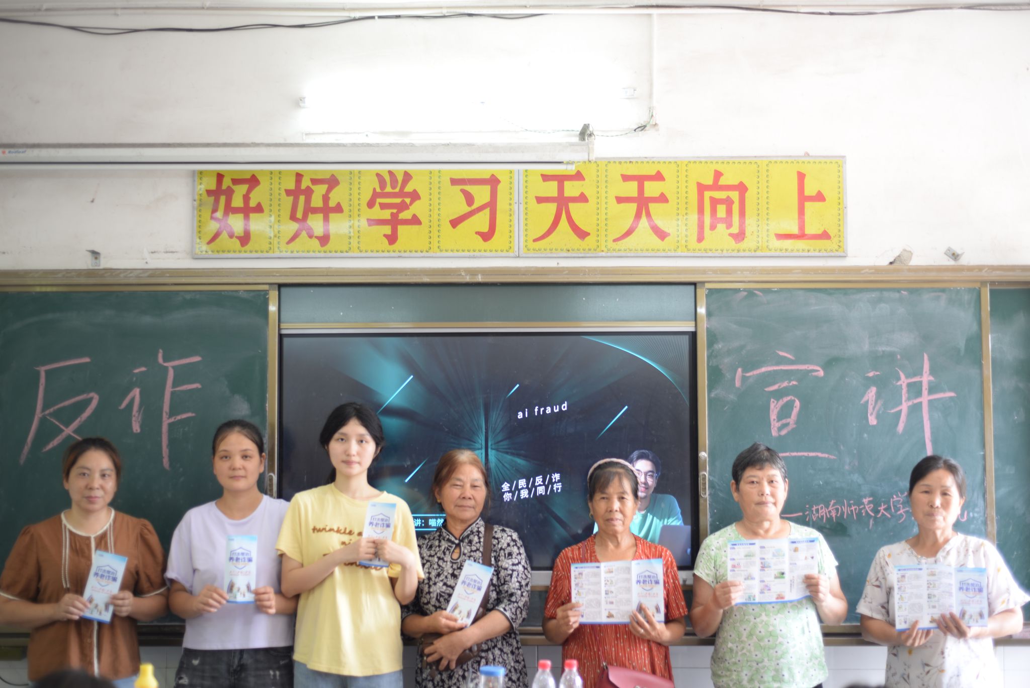 实践团成员向家长们介绍防骗小提示