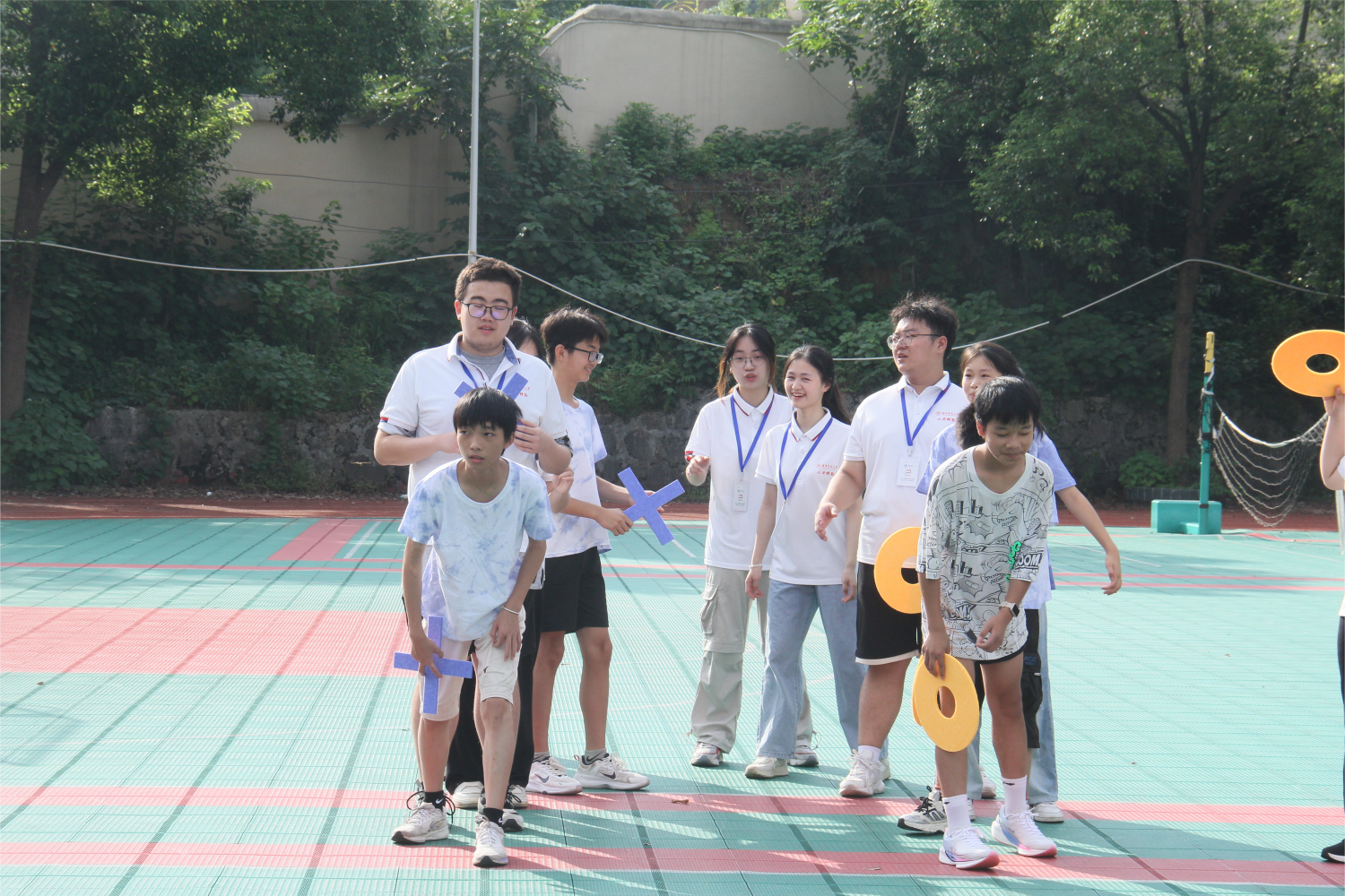 此次运动会以团队赛形式开展,实践团成员与学生共分为四个队伍,进行“欢乐五子棋”“沙包投掷盘”“排球飞行”“毽舞飞扬”“当仁不让抢凳子”五种趣味项目,并设置了根据团队排名换取套圈“套”赢奖品的奖励机制。运动会正式开始前,实践团成员先对活动场地进行了布置,并向学生讲解了比赛规则。参赛过程中,实践团成员与学生共同合作,齐心协力。个人项目中,选手们聚精会神,互相竞争,展现了青少年的精神风采。团队项目里,各队伍选手相互鼓励,共同配合,体现出团队凝聚力。赛后,实践团成员为获奖者颁发奖品并合影留念。