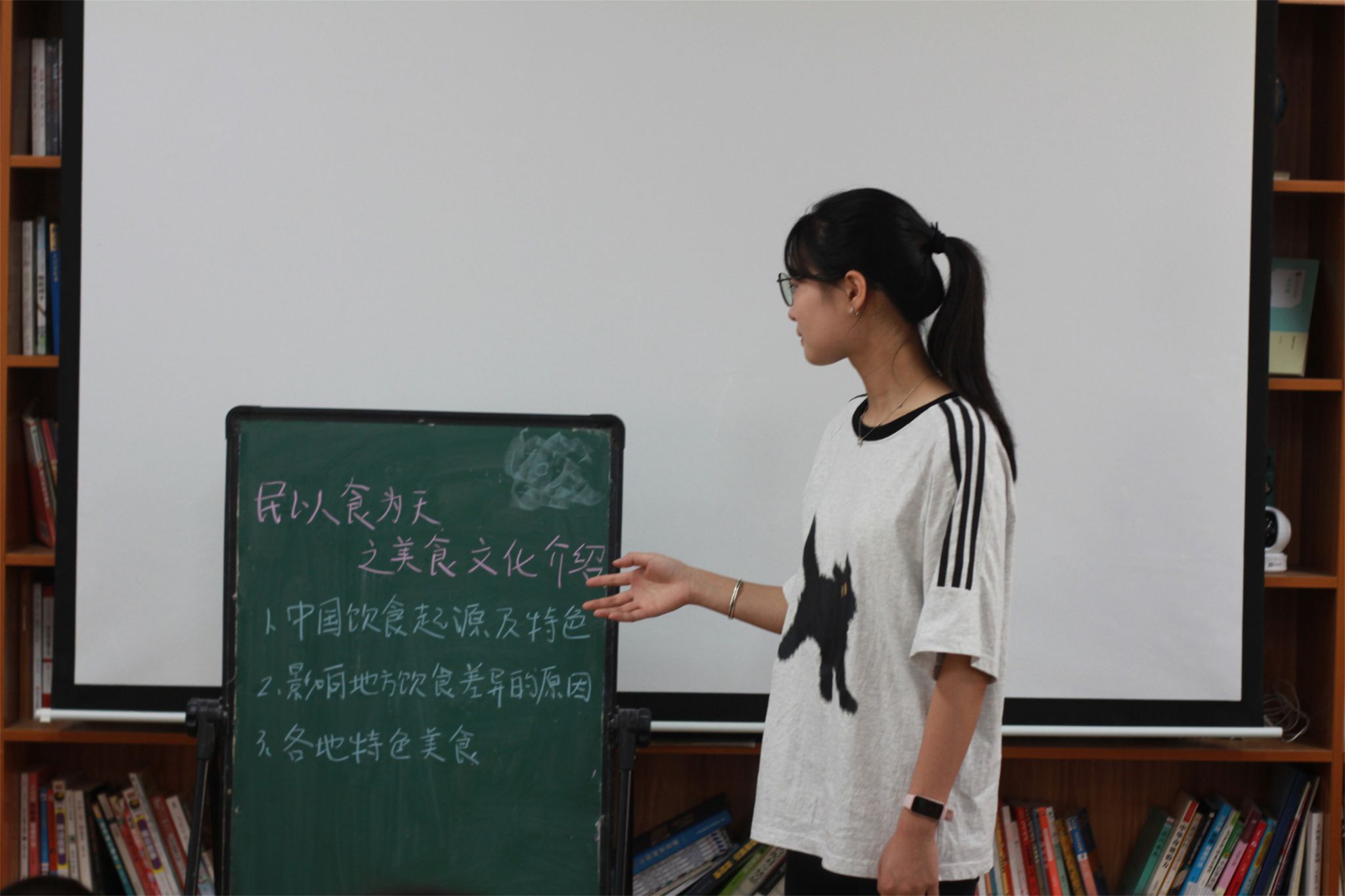 实践团成员为学生讲解美食文化
