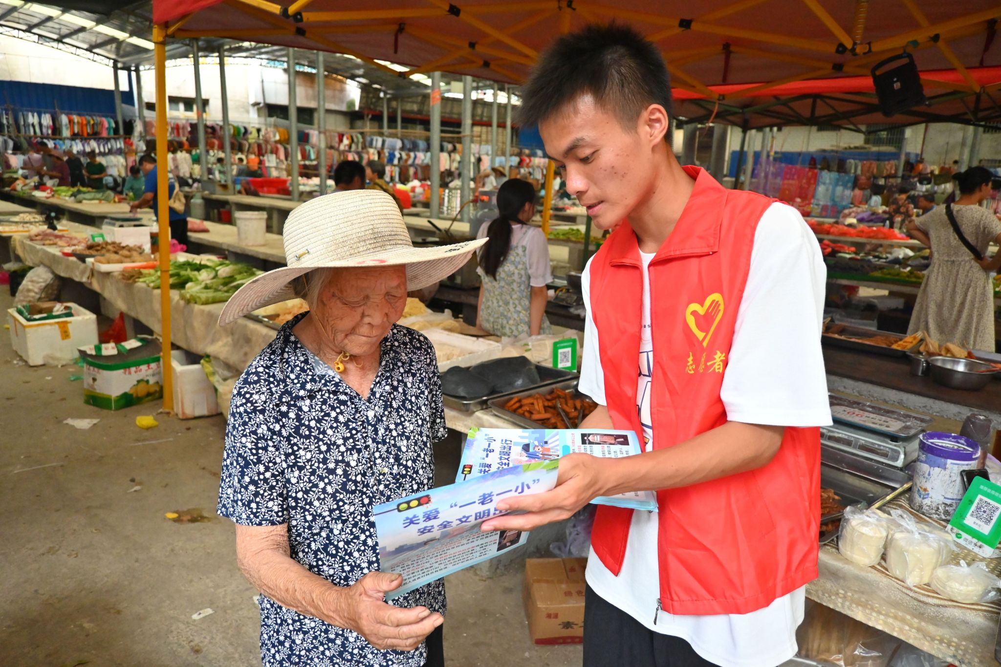 此次活动在镇政府附近的红军桥商行和集市两地举行。支教队成员在负责人的带领下来到集市向商贩和前来采购的居民分发交通安全宣传单。分发过程中,成员们认真讲解交通安全的重要性,并希望居民们能耐心阅读传单上列举的常见安全问题。在红军桥商行,除了分发传单,工作人员在路边放置写有交通事故的展示牌,支教队成员邀请路过的居民阅读展示牌上的事故案例,使他们深刻理解交通安全隐患的危害性,提高安全意识。