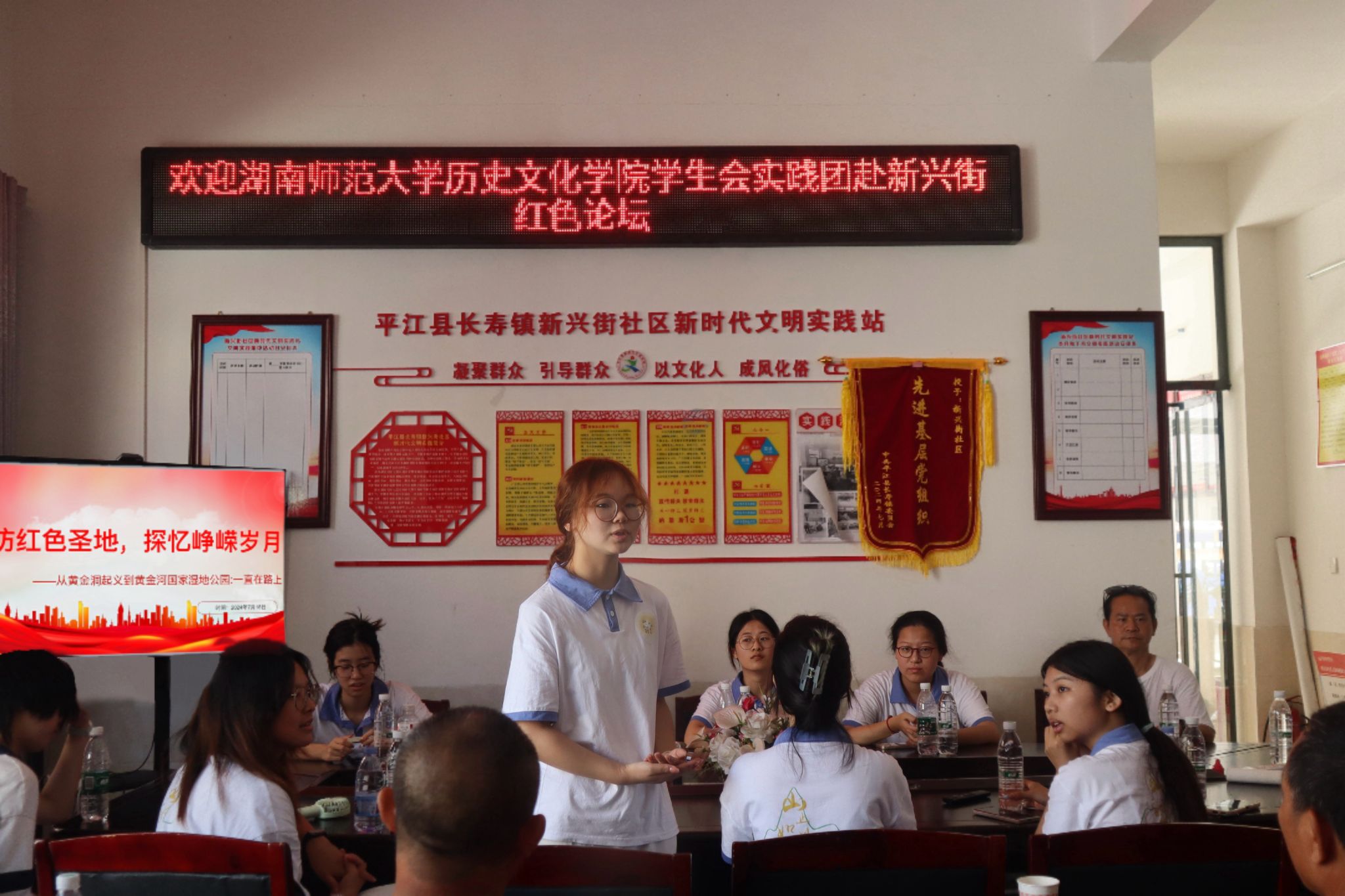 历史因铭记而永恒,此次红色论坛使得实践团成员和新兴街居民深化了对平江革命历史的了解与认同,增强了爱国主义情感和历史责任感,对于继承和发扬革命精神、让红色基因融入血脉并绽放时代光芒具有重要意义。