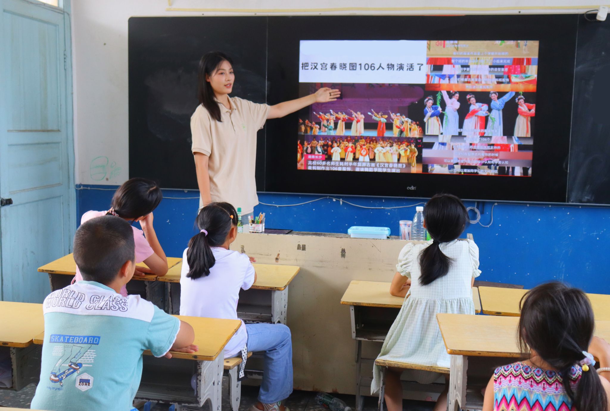 授课教师向学生讲解传统服饰知识