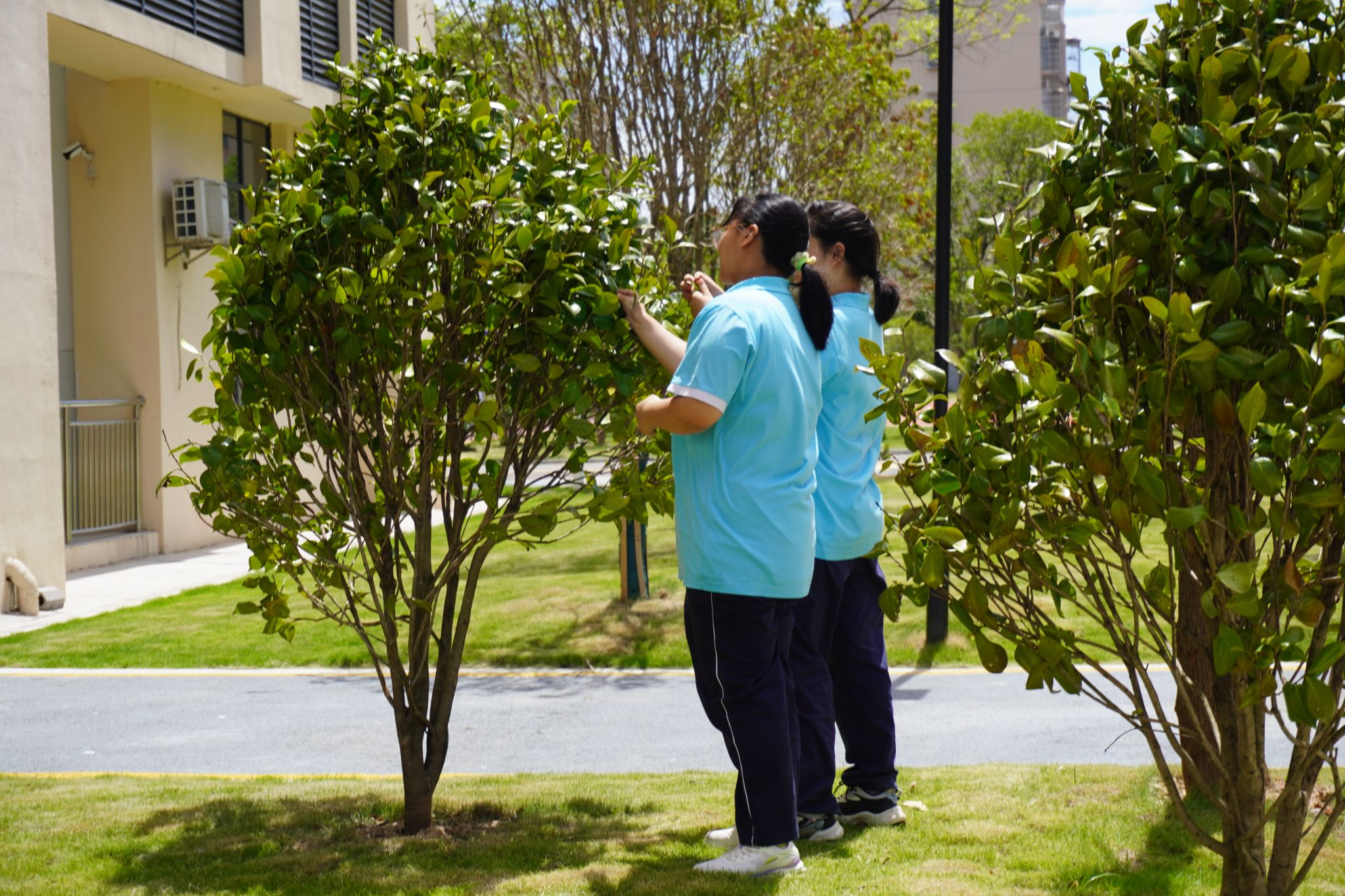同学们采摘树叶