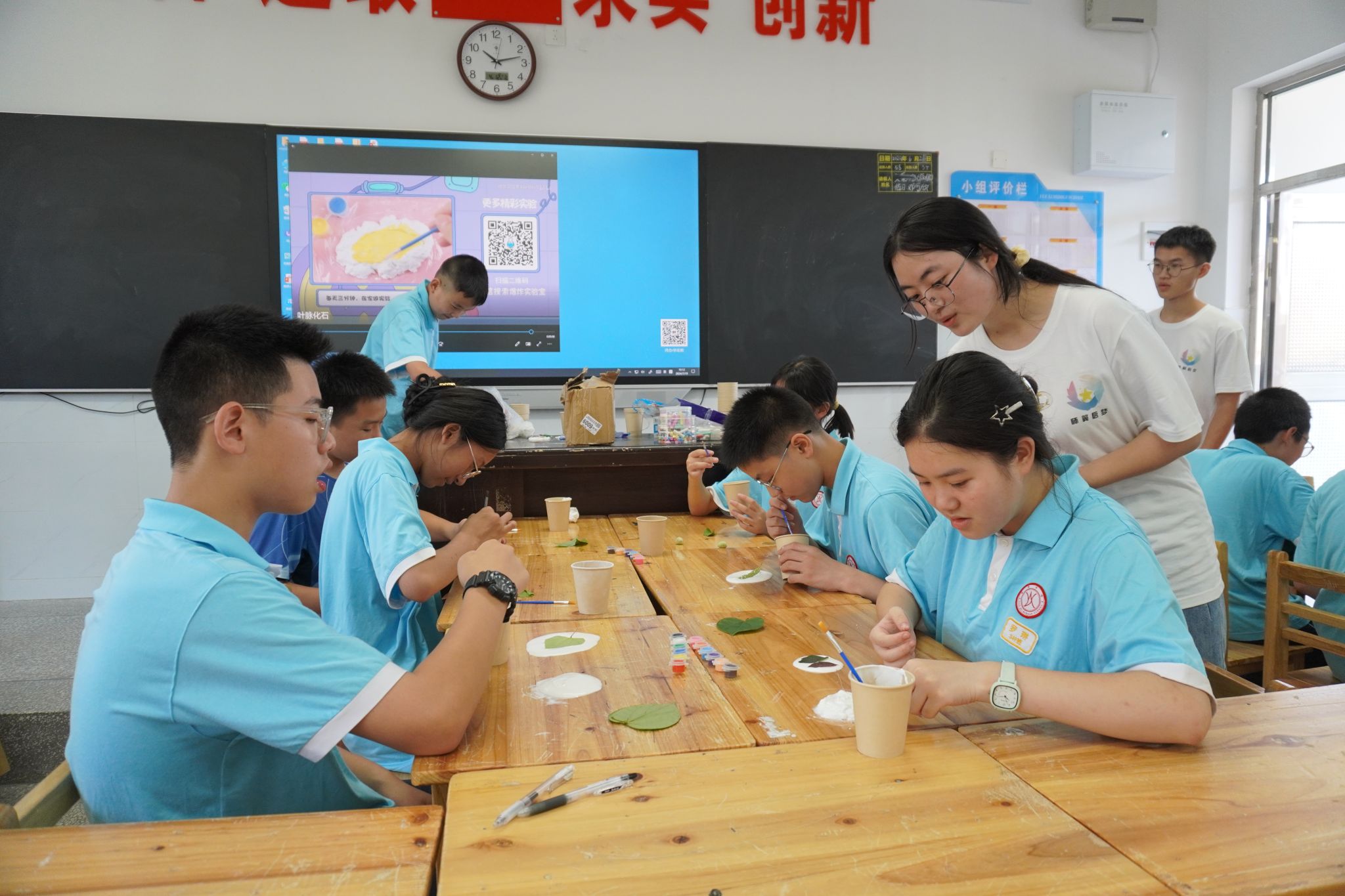 徐婧瑶指导学生制作叶脉化石