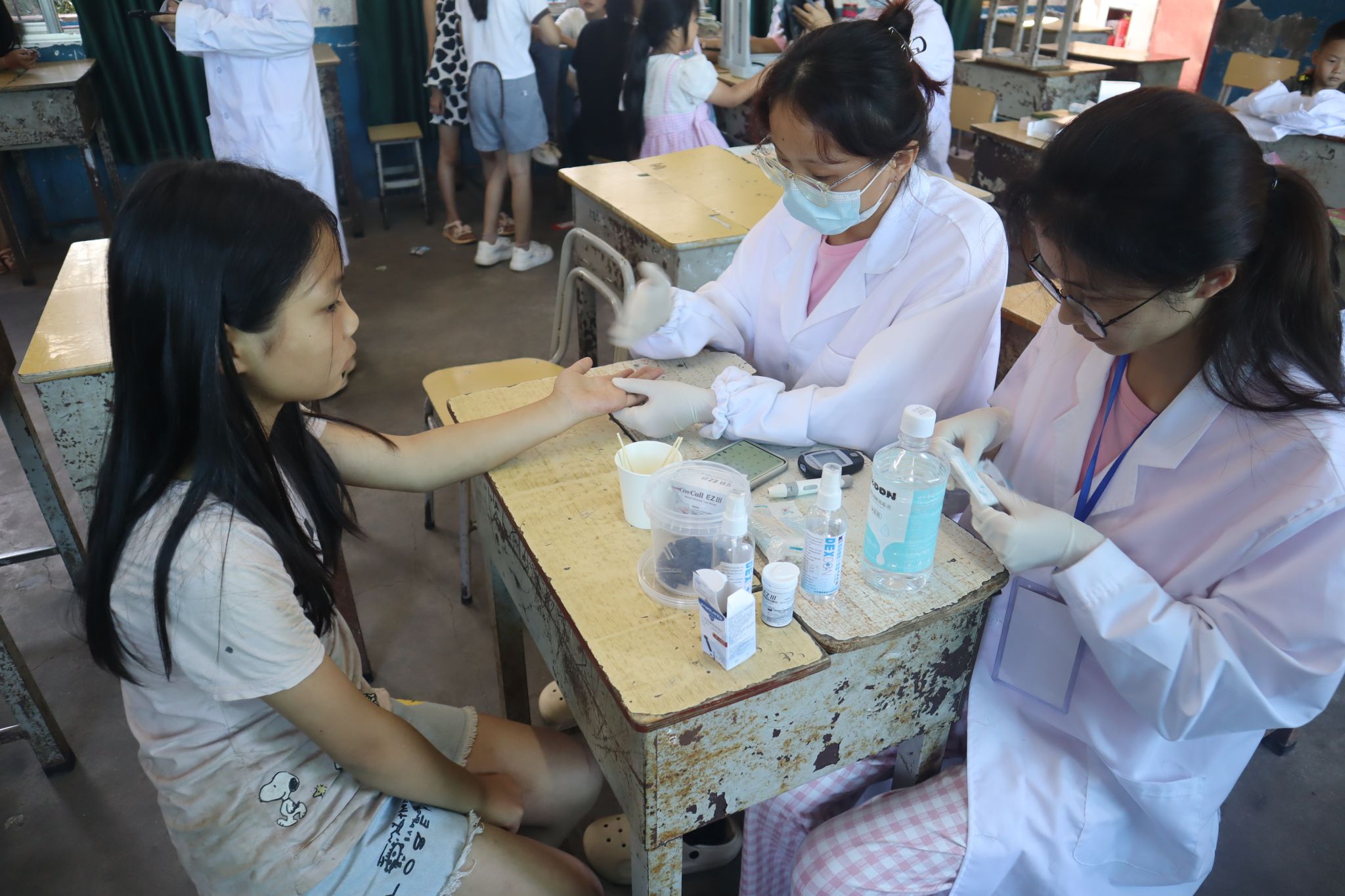 实践团成员测量血糖