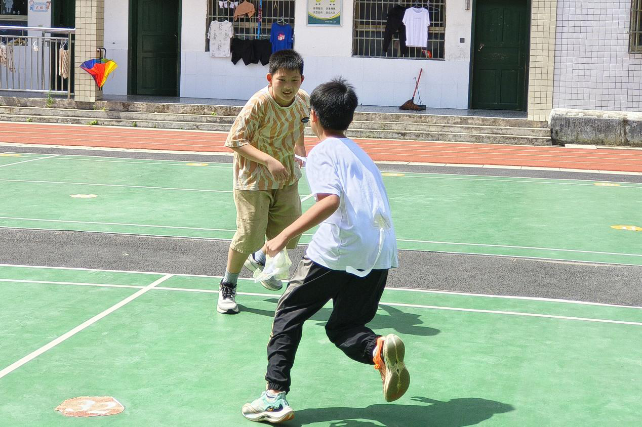 学生们进行“尾巴保卫战”趣味游戏