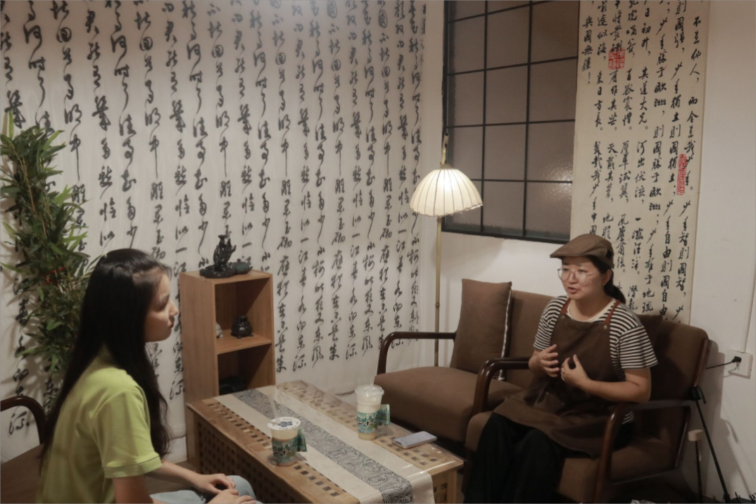 团队成员与门店负责人龚琰进行深入交流,就门店经营现状、顾客需求变化、市场变化趋势、创新茶旅融合形式等方面进行了探讨。在交流过程中,龚琰表示,沅陵县碣滩茶与奶茶的融合还处于起步阶段,但会在后续的发展过程中逐步适应消费者的需求。同时,调研组成员也通过问卷调查收集了当地的顾客反馈和市场数据,进一步了解到了实地产业发展情况。