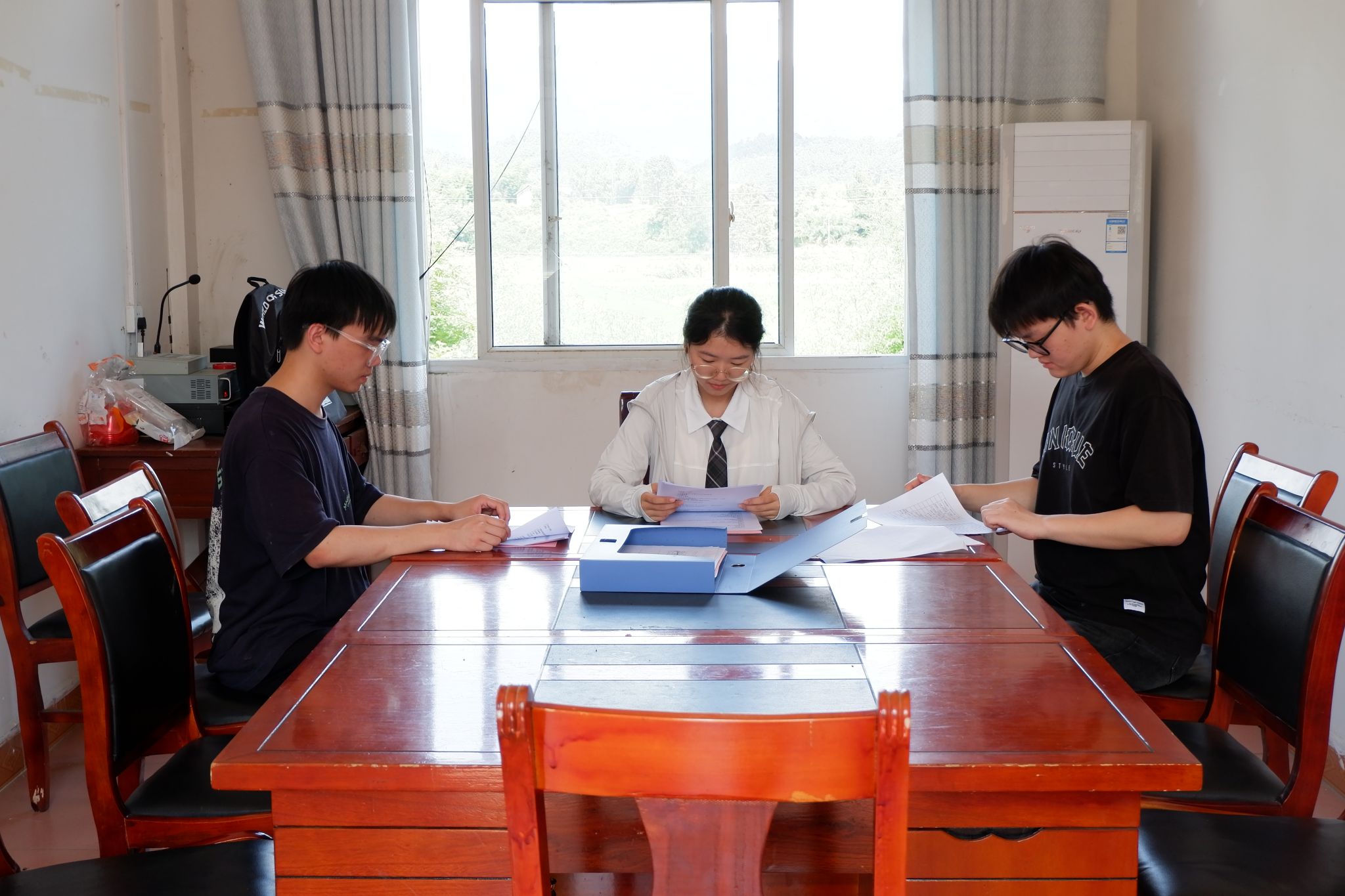 队伍成员以基层治理的常见问题为中心,展开采访工作。主要针对基层矛盾纠纷的解决、土地承包、宅基地普法这三个方面对村干部进行询问。从对村长肖盛旺的采访中,队伍成员了解到芷田村矛盾纠纷的情况。该村较为依赖亲缘与地缘的人情关系,且当地地形较崎岖,各村户之间分布散落,村民之间发生矛盾较少,基层关系和谐。在土地承包与宅基地普法方面,该村采取公开公平公正的态度,设立了相关法律知识的专栏,并且采取公示制度,将承包人和宅基地负责人公示在专栏上,进行民主监督,利于基层治理的和谐发展。在采访后,队伍成员通过对芷田村调节案例书与宅基地登记册的浏览,对芷田村情况有了更进一步的了解。