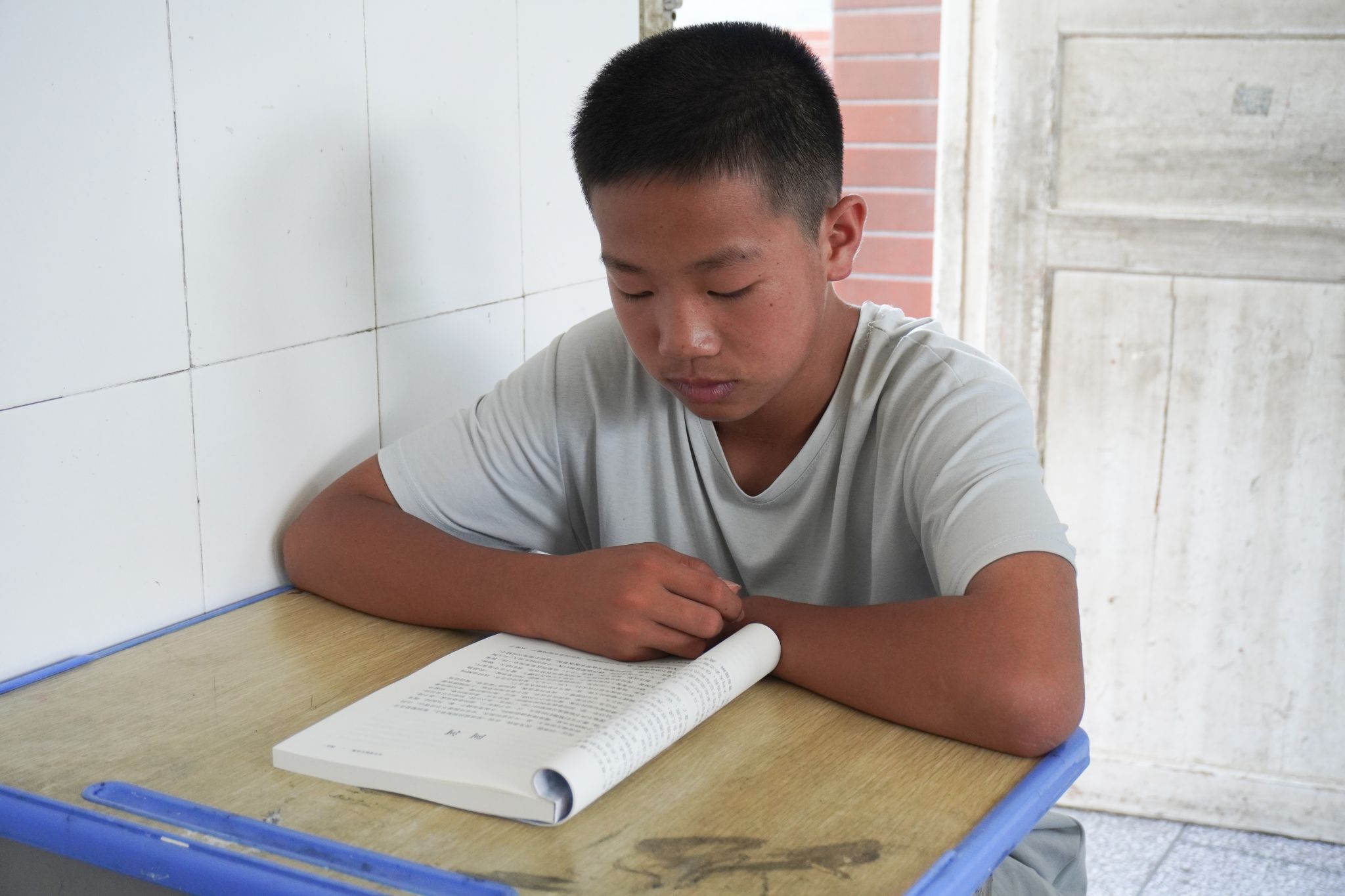 学生认真阅读