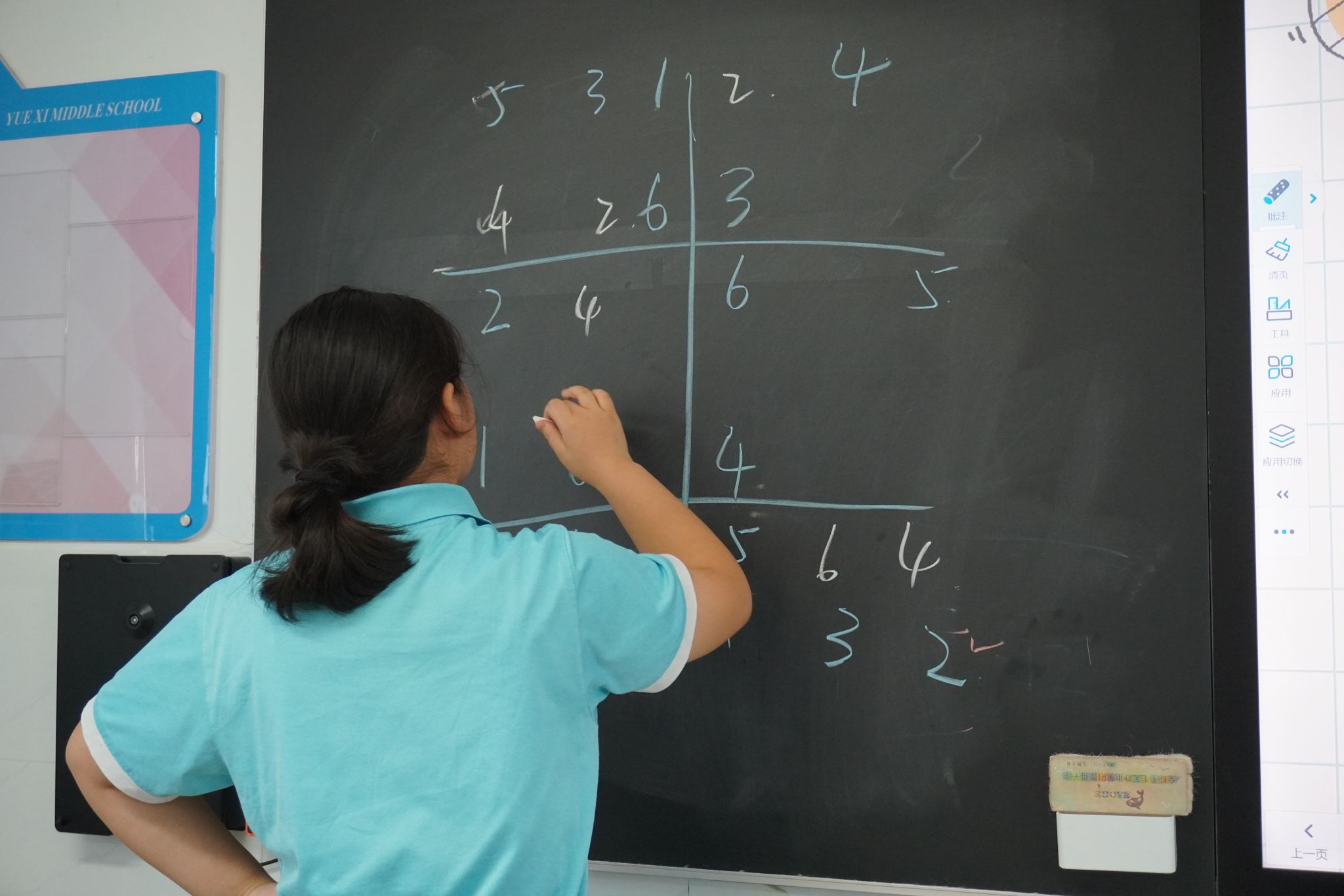 图为学生熟练掌握知识点后,上讲台独立计算并展示自己的解题思路。