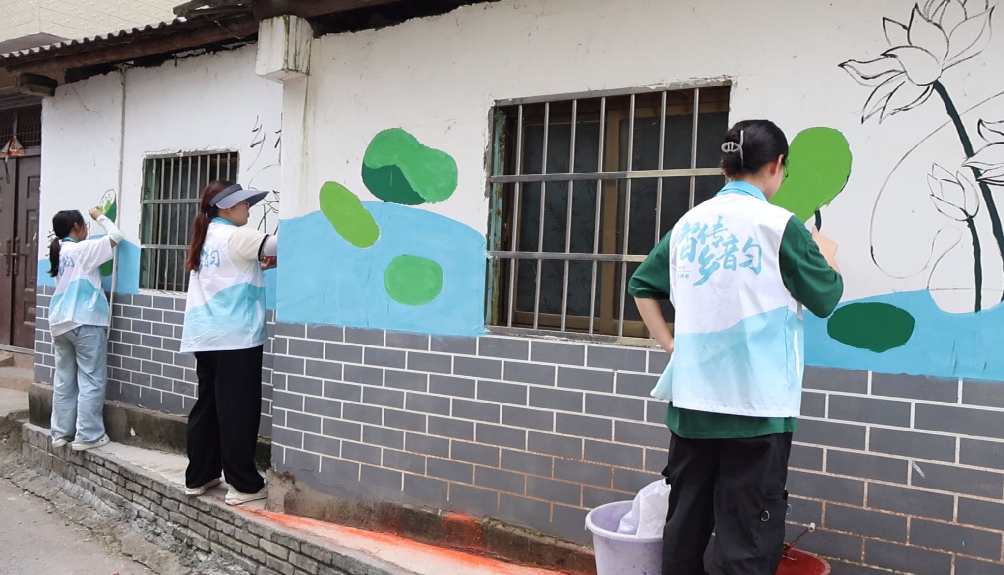“智传乡韵”暑期社会实践团以实际行动推动了岩板铺村的美丽乡村建设。此次墙绘活动是“芙蓉学子”乡村振兴计划宏伟愿景的生动展现与坚定步伐的有力践行,为岩板铺村的美丽乡村建设注入了强大的精神动力。