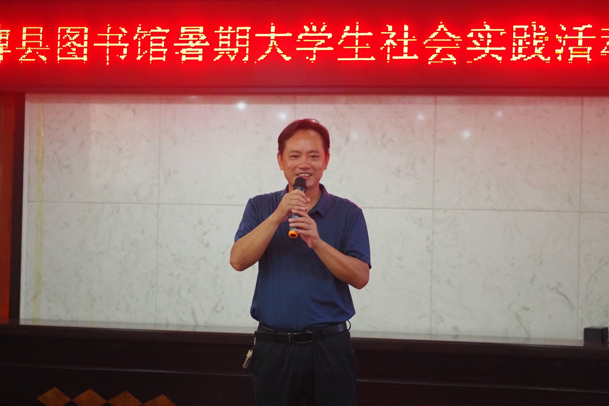 节目表演完毕,蒋朝贵讲话,对此次暑期社会实践活动进行总结。他表示,文艺汇演活动展现了双牌二小学生的青春活力与少年意气,体现了实践团成员的专业素质与能力。此外,他对参与此次暑期社会实践活动的全体成员表示感谢,对实践团成员与双牌二小学生表达祝愿。