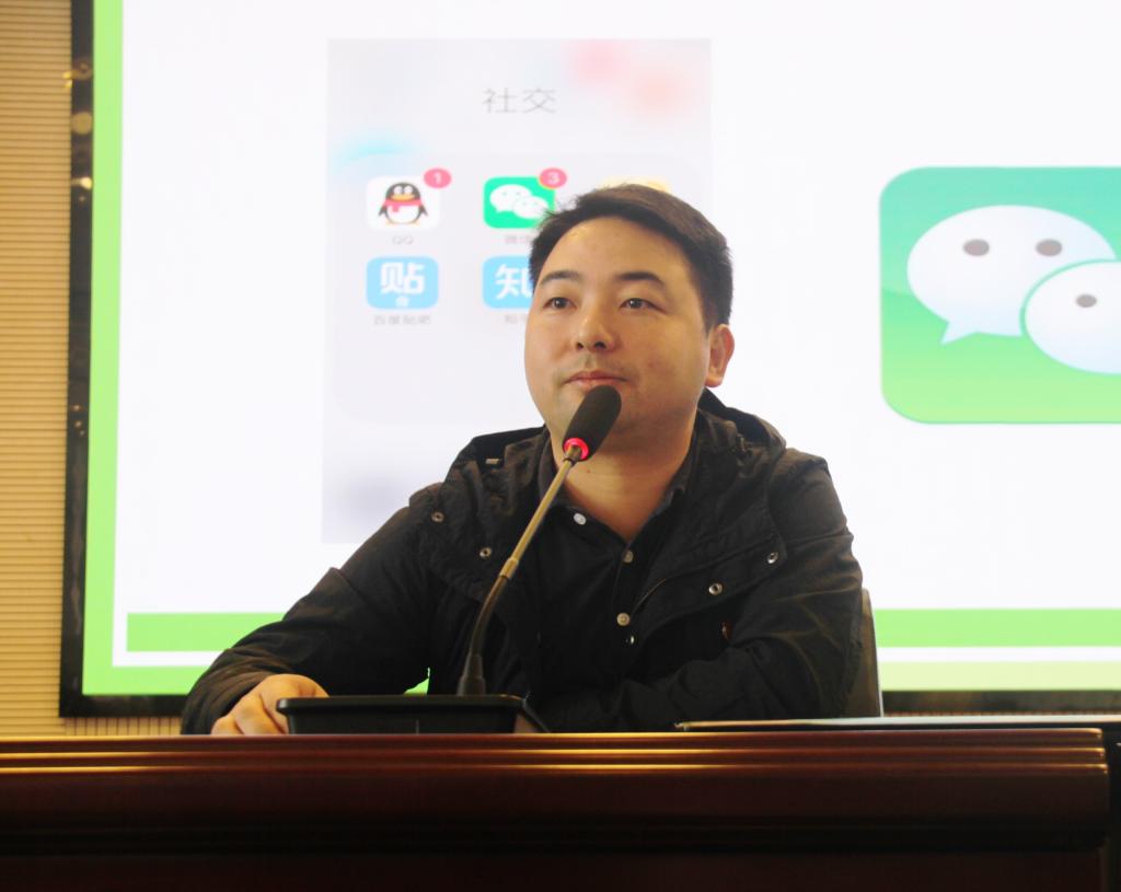 周旺蛟作以“屏幕化时代的共青团新媒体工作”为主题的理论分享。他通过列举我校青年传媒中心公众号运营、短视频制作等在新媒体工作屏幕化中的体现的实例,强调了现阶段“屏幕”逐渐演化为新的教育平台,进化为新的沟通方式,异化为新的宣传载体,幻化出新的集聚效应的四个发展方向。此后,他结合所分享的内容提出“多屏互动,精准投放,内容为王,创意为先”的团学宣传新方向。