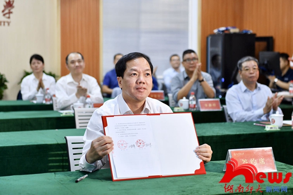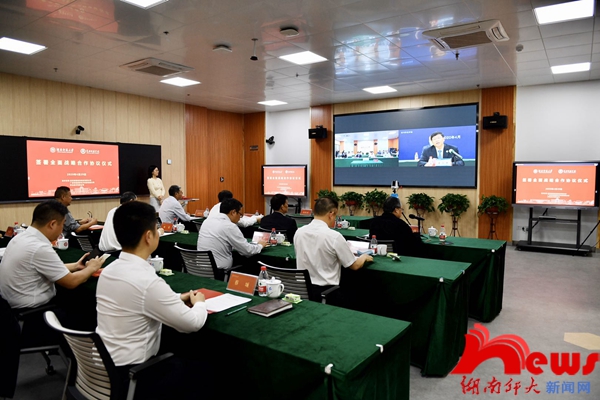 王立兵表示,在常态化抓好疫情防控的特殊时期,通过视频连线,以“屏对屏”方式签署我校与黄冈师范学院全面战略合作协议、我校对口支援黄冈师范学院就业创业工作“一帮一”行动协议,进一步巩固了湖南对口支援黄冈抗击疫情期间结下的深厚情谊,开启了双方全方位、深层次的全面战略合作关系,这必将成为两校办学历程中的一件大事。他指出,在抗击疫情最艰险的时刻,湖南对口帮扶黄冈,紧急捐赠资金物资,援鄂医疗队第一时间驰援黄冈、奔赴抗疫一线,这份深情厚谊,他们永远铭记。在学校毕业生就业和决胜申硕最吃劲的关键时期,我校走在高校“一帮一”行动的前列,向黄冈师范学院伸出援手,以实际行动践行“仁、爱、精、勤”的校训,展现了高度的使命担当,他们将心存感激。他强调,学校高度重视与我校的合作,将本着“优势互补、资源共享、互利互惠、共同发展”的原则,推动人才培养、学科与学位点建设、师资队伍建设、科学研究与学术交流、党建和思政共建等合作领域的有机对接,以最认真的态度全力推动协议落地落实,确保双方合作持续、深入、顺利实施。他坚信,随着协议的实施与推进,两校的战略合作一定会结出丰硕成果,共创新的辉煌。
