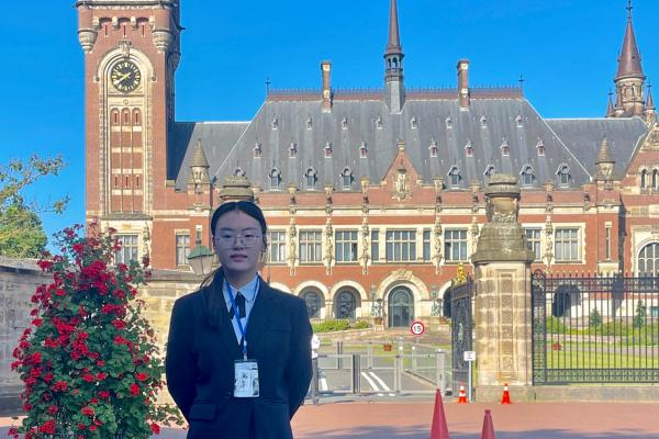 最初,出于对新事物的好奇和提升综合能力的渴望,胡玥加入了ICC赛队。备赛过程中,她全心投入,善用资源,展现出出色的个人能力和强大的团队意识。国内赛时,为研究对手书状,她与队友在法学院通宵达旦,打磨庭辩逻辑,修改庭辩稿和反驳稿。海牙之行,在国际法院的穹顶下,她聆听中国籍法官薛捍勤的箴言,属于法律人的自豪感和使命感涌上心头。那些与队友并肩作战的日夜,那些突破自我的瞬间,让胡玥看到了人生更广阔的维度。