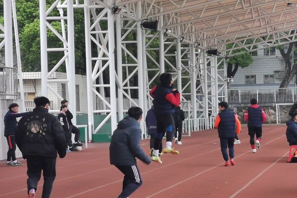 比赛开始前运动员们积极有序地在跑道上做起热身活动,激活身体各肌肉群,让身体进入运动状态,避免运动损伤。