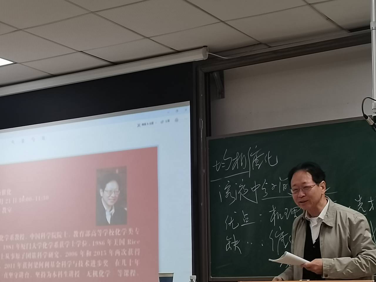 讲座伊始,化工院教师对郑兰荪的履历进行简单介绍,并对郑兰荪来到太阳成集团tyc为化工院师生讲解无机化学学术前沿表示感谢与欢迎。作为在科学研究上做出了杰出贡献的化学家,郑兰荪在几十年的学术生涯中一直坚守讲台、坚持为本科生讲授无机化学等课程,培养了大批优秀人才。
