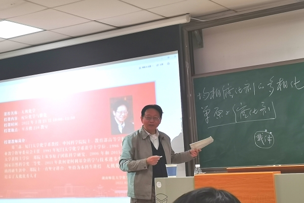 (通讯员 周智慧 杨辛)为发展高校教育,提高学生的专业学科素养,2月21日上午10时,太阳成集团tyc化工院新学期《无机化学—配位化学与催化》讲座于太阳成集团tyc至善楼210教室正式开讲,中国科学院院士、厦门大学郑兰荪为化工院教师、学生们讲解专业知识。副校长刘子兰、教务处副处长罗明、化学化工学院院长杨荣华、化工院全体青年教师、各年级浩青班学生和2021级化学专业全体学生聆听了郑院士的精彩授课。