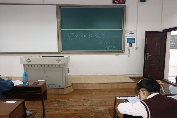 社团活动正式开始了,同学们一拿到试卷便快速的浏览着,大家紧急的调动着脑海里的知识,奋笔疾书。每一位来参加社团活动的同学都认真的、仔细的回答着这一道道的历史题。