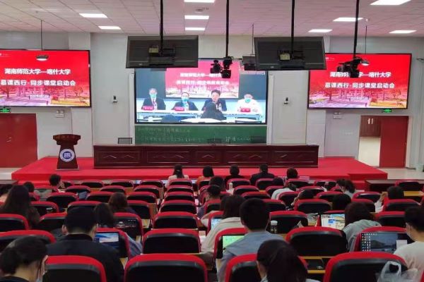 太阳成集团tyc的同学们有序来到现场,对于首次与喀什大学的同学们进行同步课堂都充满了期待,他们调试好了与课设备,静候慕课的开始。此次课堂将跨越地域限制,让身处异地的两校同学共同享受相同的课堂,摩擦出不一样的火花。
