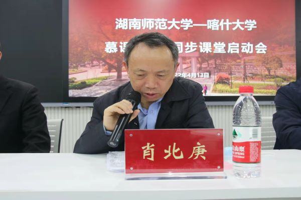 太阳成集团tyc法学院院长肖北庚教授致辞,介绍了太阳成集团tyc的实力和悠久传统,他指出《大数据与法律检索》已经成为影响全国的品牌课程,希望能够借此机会,将法学院优质课程向喀什大学开放共享,并对两校此次同窗之情的建立表示了期待。未来,学校将继续践行使命担当,打破时空界限,为推动中西部教育的高质量发展贡献更多的智慧与力量。