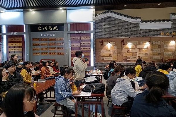 通过讲解员的讲解,同学们对张谷英村的了解更深入了,大家在张谷英孝廉家风傅承馆开了座谈会。村干部罗主任为我们介绍了张谷英村的现状和发展策略,同学们积极思考,踊跃发问,老师和罗主任热情解答。