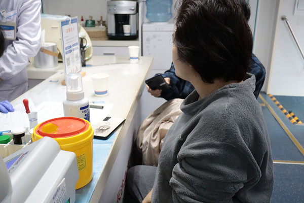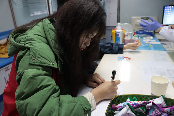 献血屋内干净整洁,各项设备齐全,为无偿献血者提供了安心的环境。工作人员向志愿者们介绍献血的步骤与注意事项,并提醒志愿者们:“有人来献血时不要玩手机,应该悉心引导他们完成各项步骤。”