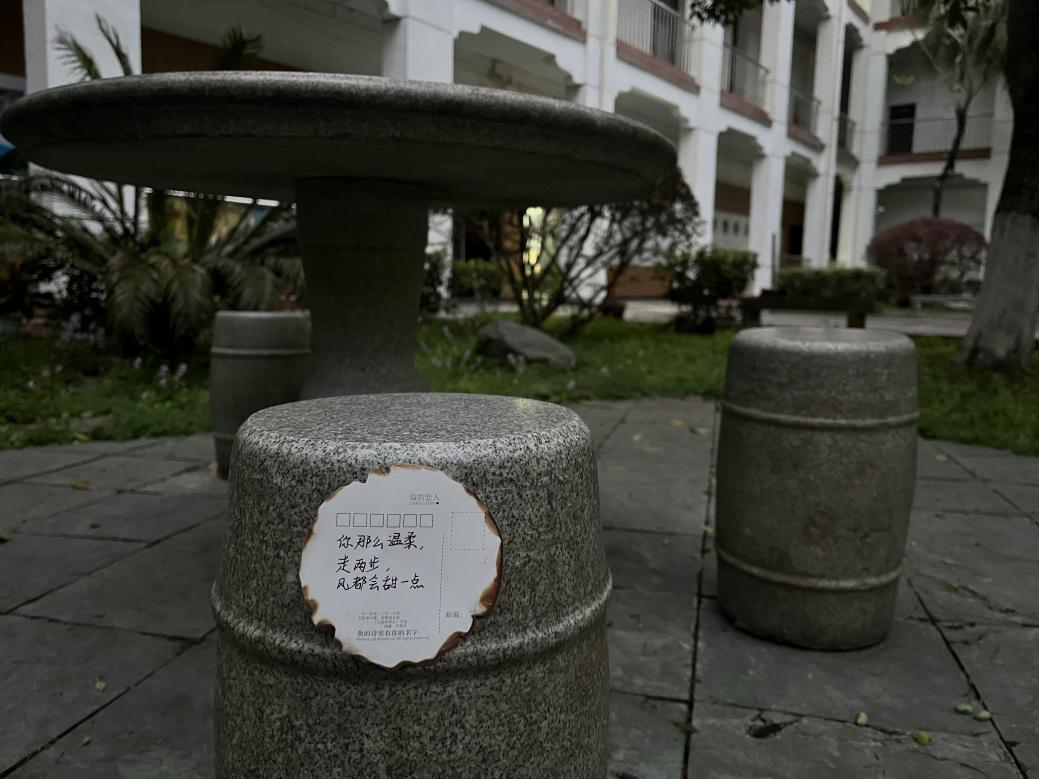 小花园里没有人,玫瑰与卡片在这一方静谧中默默吟诵着象征美好的诗句,等待着人来采撷。