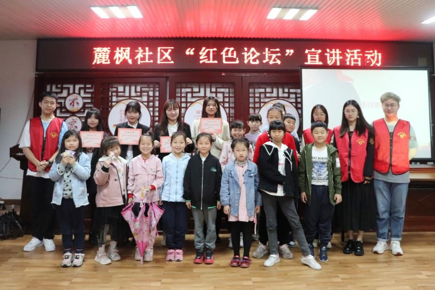 最后为主持人颁发了证书,大家一起合影。本次麓枫社区“红色论坛”宣讲活动的成功举办,不仅契合学习四史的要求,也推进了社区与学校的紧密关系,同时让小朋友们心中埋下了学习四史的种子,可谓意义非凡。