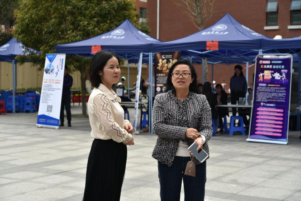 商学院党委副书记陈君与用人单位进行交谈,深入了解了企业目前的用人标准、工作待遇和学生的求职情况。
