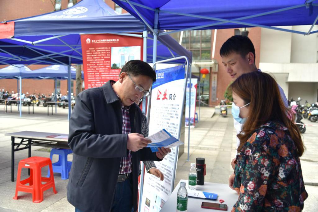中国金茂华中区域人事代表与我院学子进行交谈,表示其公司招聘管培生,要求应聘人员执行能力强,学习与适应抗压能力俱佳。