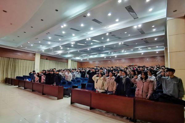 主持人和同学们进行了互动提问环节,同学们活跃讨论,纷纷积极发言。主持人李子航同学,带领各位同学进行宣誓。