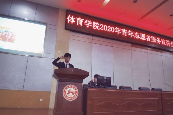 青工部负责人陈绍泽同学带领同学们进行了志愿者活动的回顾,体院青工部举办了许多优秀的志愿者活动,例如近期在麓山南路社区服务基地的志愿者活动和2020年湖南省大学生田径比赛志愿者活动。优秀的学生志愿者代表刘飞扬同学和徐诗怡同学进行了自我介绍,并鼓励同学们积极投身于志愿者活动中。
