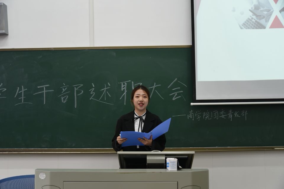 (通讯员 李洋林 唐雨凡 陈娜)为了进一步提高学生干部服务水平与工作效率,明确一年的工作目标,推进团学组织工作和改革,商学院团委青发部在中和楼114举办了商学院学生干部述职大会。8名商学院学生干部进行述职报告,商学院党委副书记陈君,团委书记郭书畅,学工办主任颜坤,17级辅导员刘伟杰出席会议。