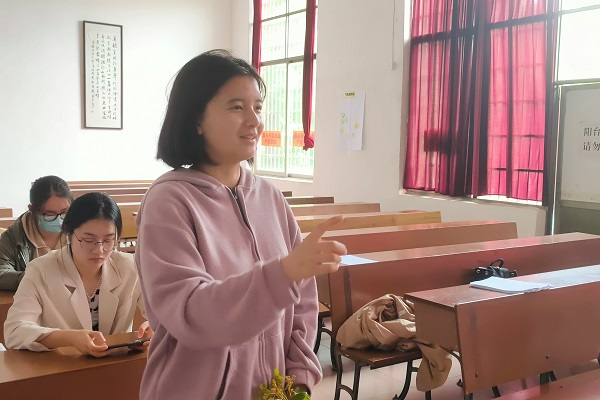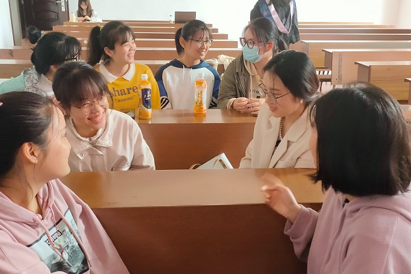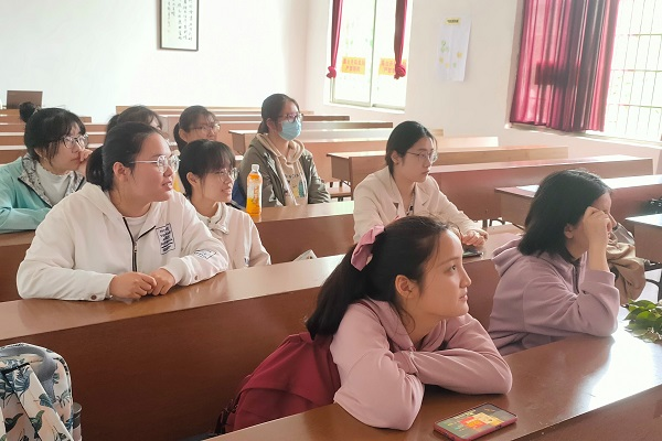 王思慧负责现场秩序维护,同学们在主持人的带领下热烈地进行着讨论。