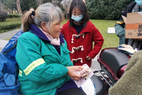 志愿者们向他们说明来意后,他们纷纷停下了手中的工作,腾出手接受了志愿者们送去的暖宝宝以及小零食,并对志愿者们表示了感谢。
