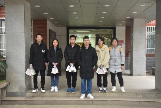中午,志愿者们先为学校里的保安叔叔、宿管阿姨、食堂阿姨等人送去了小礼物,为他们送去冬日里的一份温暖。
