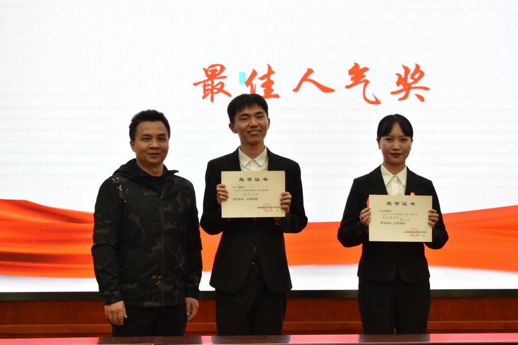 18位选手全部演讲完毕,嘉宾与老师上台进行了点评。经过投票,获奖名单最终产生。由嘉宾与老师宣读2019年“2000级政教二班”励志奖学金获奖名单,自强之星征文获奖名单和自强之星演讲比赛决赛获奖名单,并进行颁奖仪式。