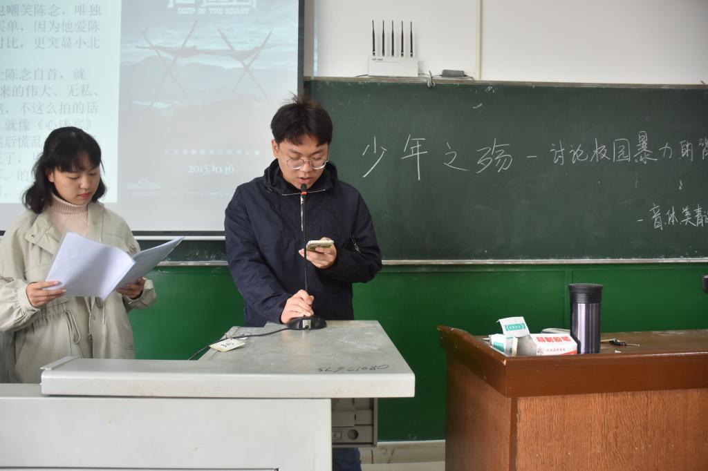 不知不觉学期已过半,初踏校园青涩的我们早已褪去了当日的稚嫩,也将眼光从繁华的大千世界集中到了校园问题的深层探讨上,随着电影《少年的你》热映,校园暴力再一次暴露在阳光下。11月20日中午12点半,由音乐学院和体育学院举办的主题为“少年之殇-讨论校园暴力的背后”的评论活动在体育学院教学楼306教室拉开帷幕。