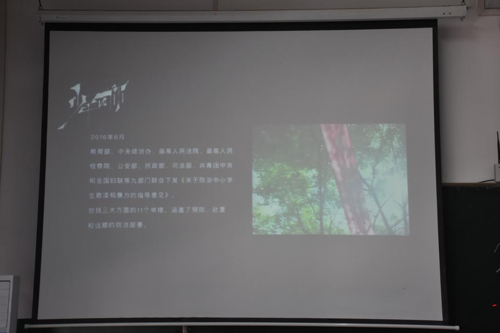 活动结尾,主持人通过一段小视频来升华主题——校园暴力好似一把黑色的匕首,只有当它真实刺痛你的时候你才会感受到它的锋利。呼吁大家拒绝暴力,不仅仅是保护他人,更是保护自己。