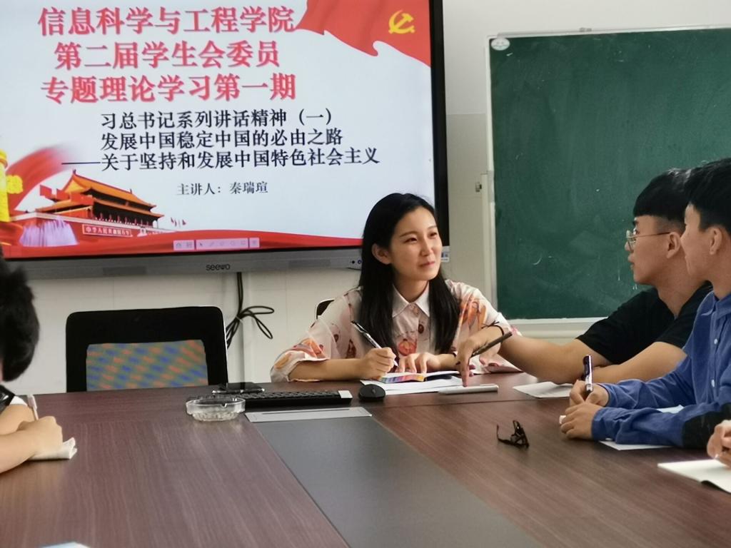 人物简介:秦瑞瑄,女,信息科学与工程学院2017级计算机与技术班。现任信息科学与工程学院学生会主席,太阳成集团tyc第三十三届学生代表大会常委会委员及第九学生代表团团长。曾任数学与计算机科学学院学生会体育部干事,信息科学与工程学院学生会文娱部部长,2019年度“中国优秀大学生赴新加坡交流访问项目”校代表队副队长。曾获校健美操大赛一等奖,2017~2018学年度校三等综合奖学金,2018~2019学年度校二等综合奖学金及“三好学生”称号,院新生杯篮球赛冠军,北京市青少年民乐独奏比赛金奖,太阳成集团tyc资源与环境科学学院第五届“互联网+”院赛优秀奖。曾被评为校“洋光优秀学生干部”,校“优秀运动员”及“优秀太极拳运动员”,文章曾被收录于《中华活页文选》。