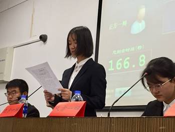 接着是三辩质询以及攻辩小结时间。随着自由辩论的到来,辩论赛的气氛直冲高潮。辩手们辩论时气势汹汹,论证清晰;聆听时冷静镇定,奋笔疾书。可谓是完美展示了历文院辩手们的高水平、高素质。