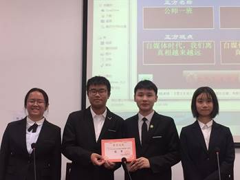 主持人正式宣布比赛开始。本次辩论赛题目为:自媒体时代,我们离真相越来越近还是越来越远,此次比赛双方分别是公师一班和公师二班。