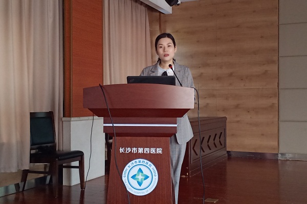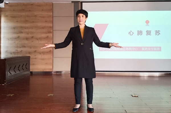 长沙市第四医院“白金十分钟”急救普及志愿服务队负责人发表讲话,她表示希望通过此次培训会,志愿者们能够学习到新的急救知识,并且提高在实际生活中应对紧急情况的应急能力。