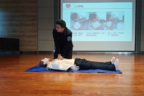 随后,市四医院“白金十分钟“志愿服务队成员在台上布置好模拟急救装备,并向志愿者们演示在紧急情况下心脏复苏急救措施。