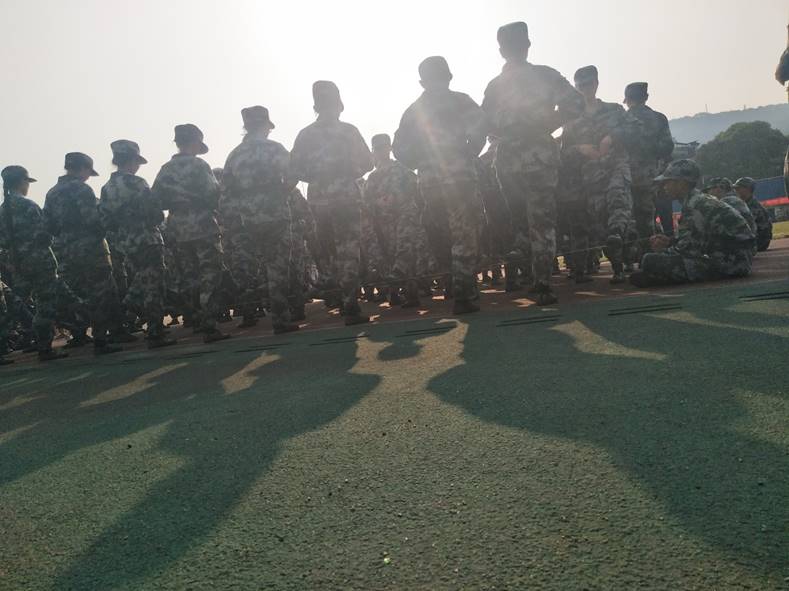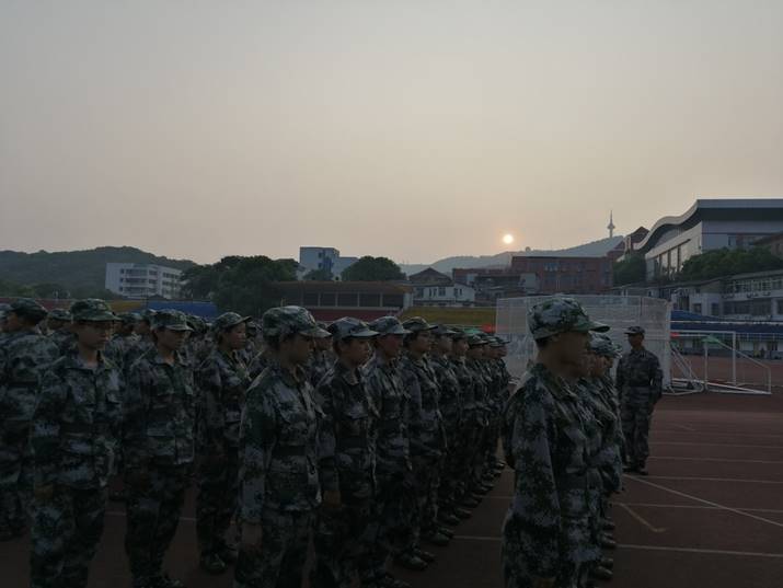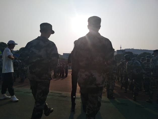 (通讯员 王钟芳 唐菁 胡越)早晨八点,太阳还没有升起的时候,商学院19级的新生已经早早来到军训场上,在教官的指挥下进行着训练,所有人都没有受周围因素的影响,跟着教官的指令,动作整齐划一。