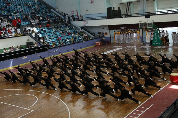 太极拳队员们抓紧时间,进行了比赛前的最后一次练习。一遍一遍的练习早已让他们对太极拳有了自己的见解,动作也更加行云流水。