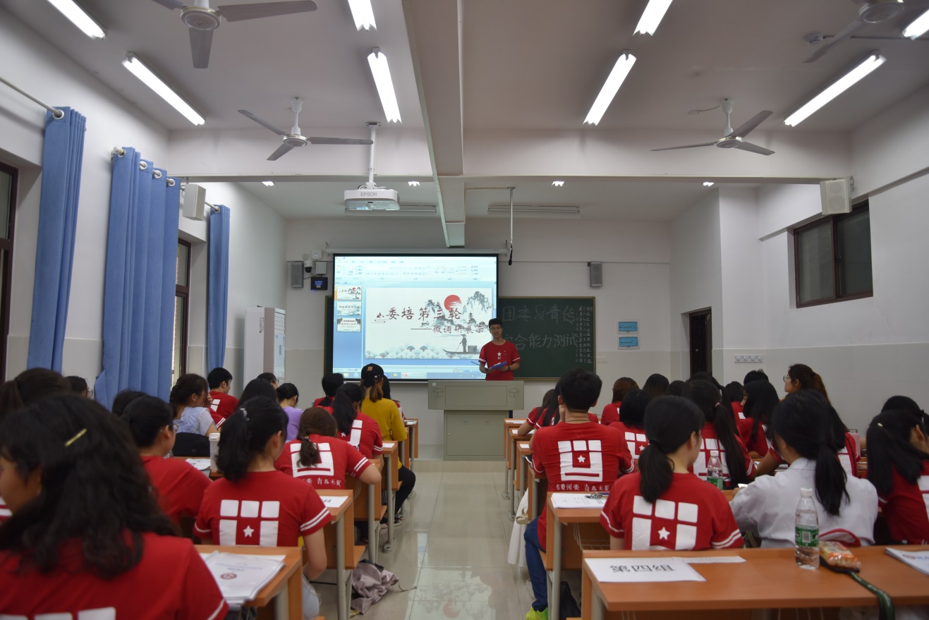 委培的第一轮和第二轮统一安排在同一天进行。首先由商学院团委宣传部部长赵茜进行简单开场,强调测试要求、测试安排、测试规则等。随后,第一轮和第二轮主要负责人(主要由现任委员组成)发放精心准备的试卷。