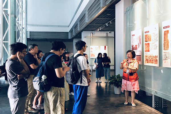 工作人员用亲切的笑容与轻柔的声音为同学们打开简牍文化的新天地,同学们听得很是专注,不知不觉就被这吸引住了。