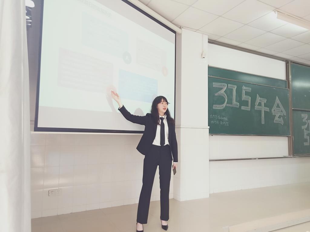 午会正式开始后,首先由维权协会的理事为同学们介绍有关国际消费者维权日的历史知识,同时也向大家展示了近年来我国关于该活动的不同主题与主张。